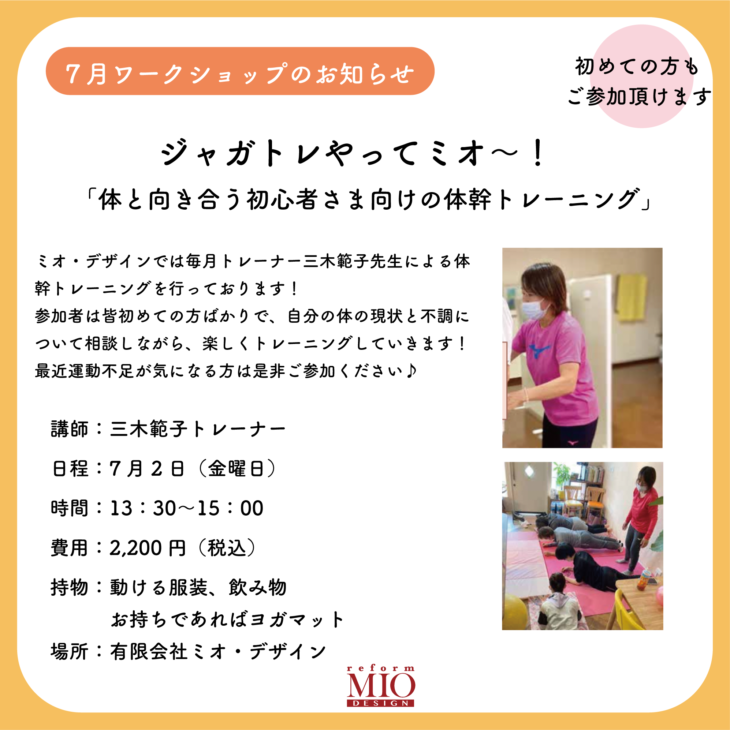 【7月のワークショップ】ジャガトレやってミオ〜!❣️〜初心者でもできる体幹トレーニング〜(終了しました)