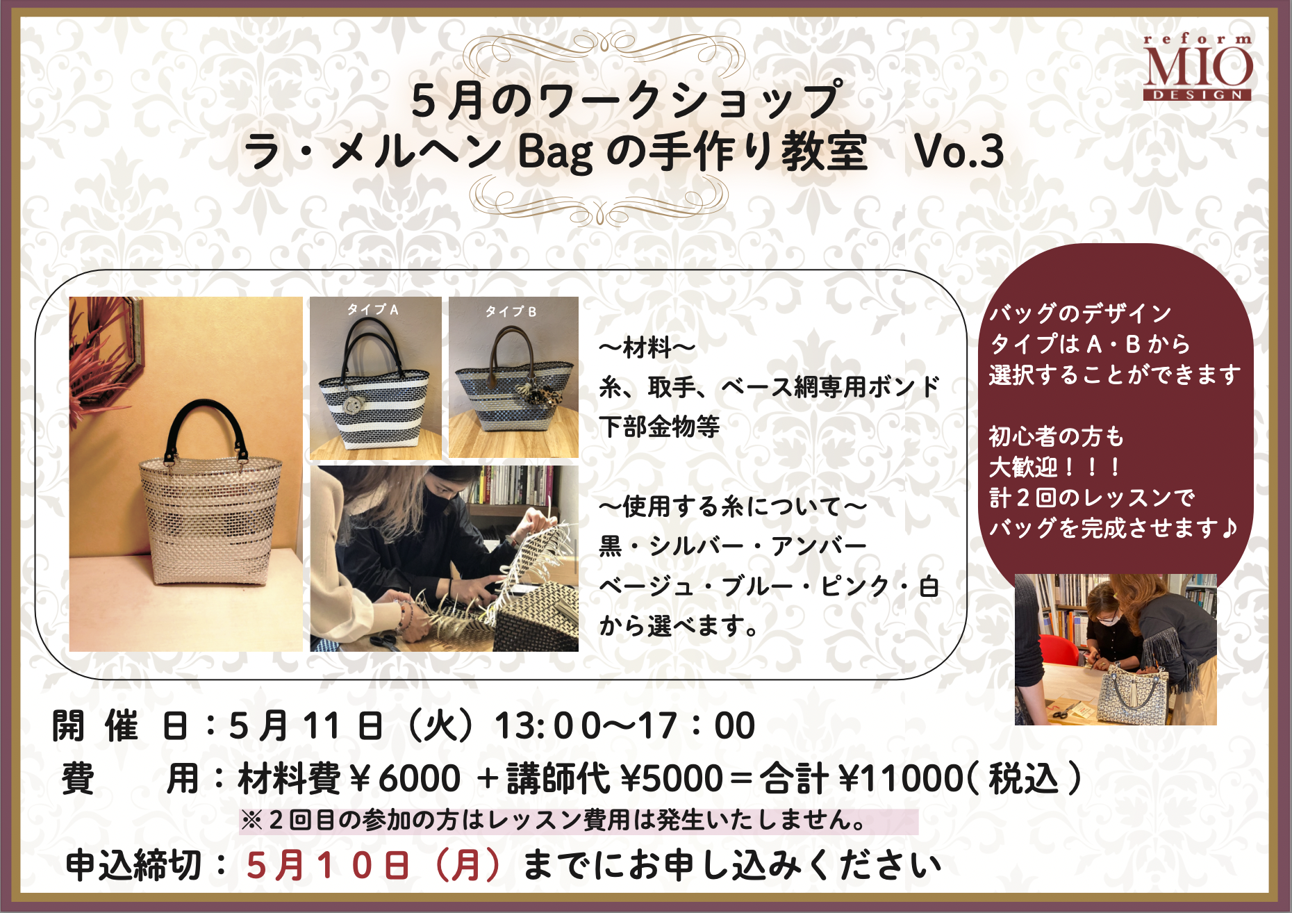前回大好評だったラ・メルヘンBagの手作り教室の3回目が開催されます!
