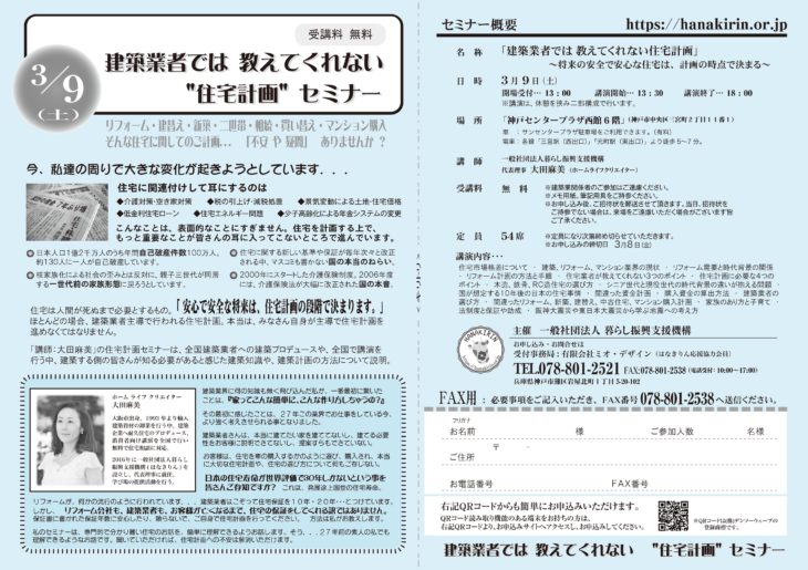 「建築業者では 教えてくれない住宅計画」~将来の安全で安心な住宅は、計画の時点で決まる~(終了しました)