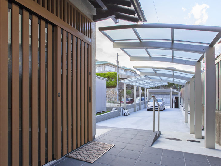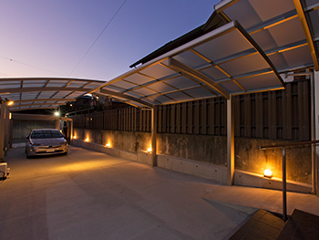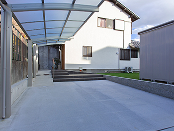 雨の日でも、家の中まで濡れることなく入ることができます。地面がコンクリートなので、靴もタイヤも汚れにくいです。