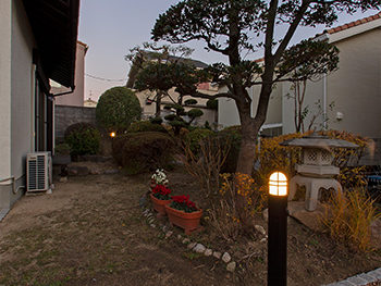 外灯が庭を照らします。お客様も喜んでくださりました。