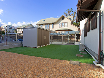 耐久性が高くお手入れ不要な、人工芝を敷きました。