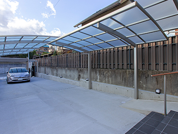 とてもスマートなデザインです。開放的で明るい駐車場は、安全です。