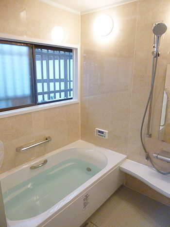 空間の広さを活かして、大きい浴槽の1618サイズのユニットバスを設置しました。