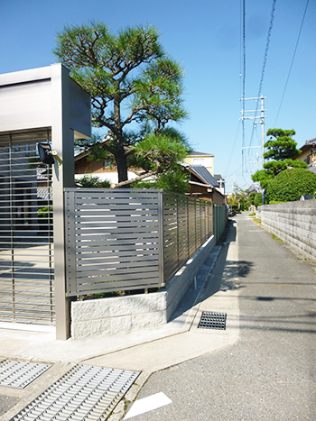 お庭の雰囲気ともバッチリ、高級感があるシャイングレーのシャッターです。