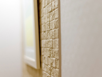廊下です。デザインの良さだけでは無く、調湿機能や消臭機能もある優れもののタイルです。空間の中にタイルがあると、一気におしゃれな雰囲気になります。お客様をお迎えする玄関にはぴったりです。