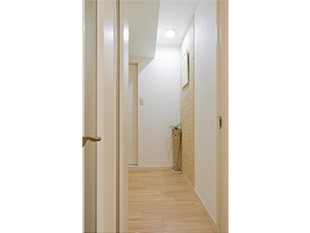 玄関から入って正面に見える廊下の壁には「エコカラット」というタイルを貼りました。