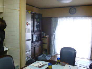 以前はキッチン横に前回のリフォームの際に取り切れなかった間仕切りの壁があった為、ダイニングスペースを圧迫し、その横に並べて配置していた冷蔵庫・食器棚がとても不便で使いにくいものでした。壁は撤去し、新たにカウンターを新設。