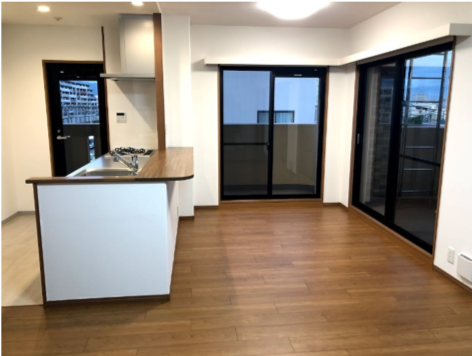 | 使用商材 | ◆キッチン:クリナップ ラクエラ ネイビー ◆建具:Panasonic Veritis チェリー色 ◆床材:朝日ウッドテック アネックス チェリー色(LDK/廊下) ◆クッションフロアー:サンゲツ HM-4085(キッチン/押入) |