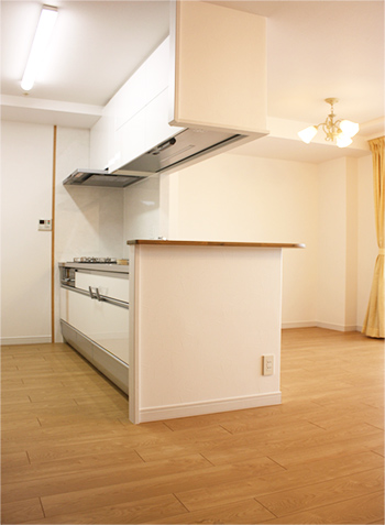 | ご提案内容 | 中古マンションをご購入され、フローリングを貼り替えたいというご要望から、キッチンの入れ替え、クロスの貼り替え、照明器具もお好みに合わせてお選びになり全体的なリフォームとなりました。 |