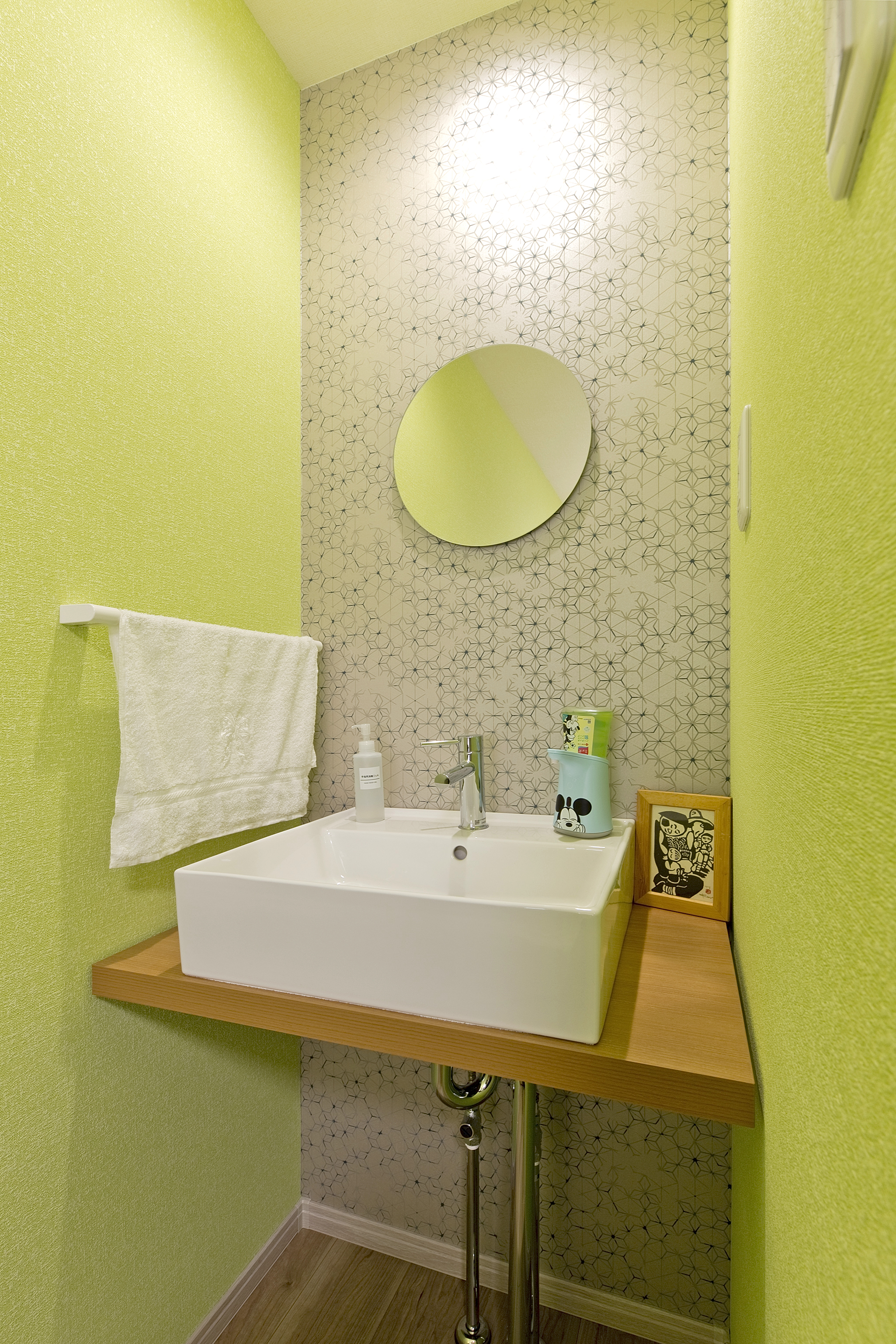 【洗面化粧台】LIXIL エスタ 【洗面(麻の葉)】SINCOL BB9536 【洗面サイド壁(緑)】SINCOL BA6277 |