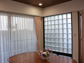壁の角が両面ガラスになっていることで、部屋に光がたくさん入ります。