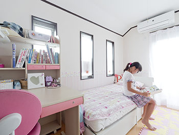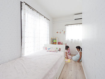 勉強スペースに寝るスペースも確保し、収納スペースはお子様の成長に合わせて変えられるよう、クローゼットは造りませんでした。