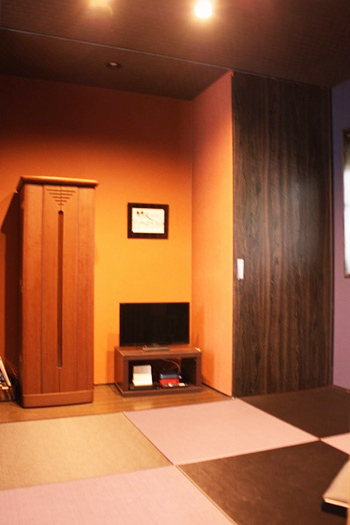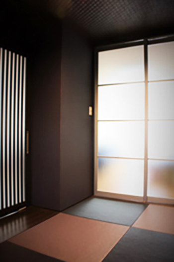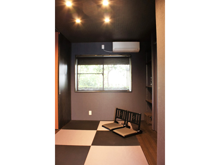 琉球畳風の畳はブラック×薄いバイオレットの絶妙な配色です。